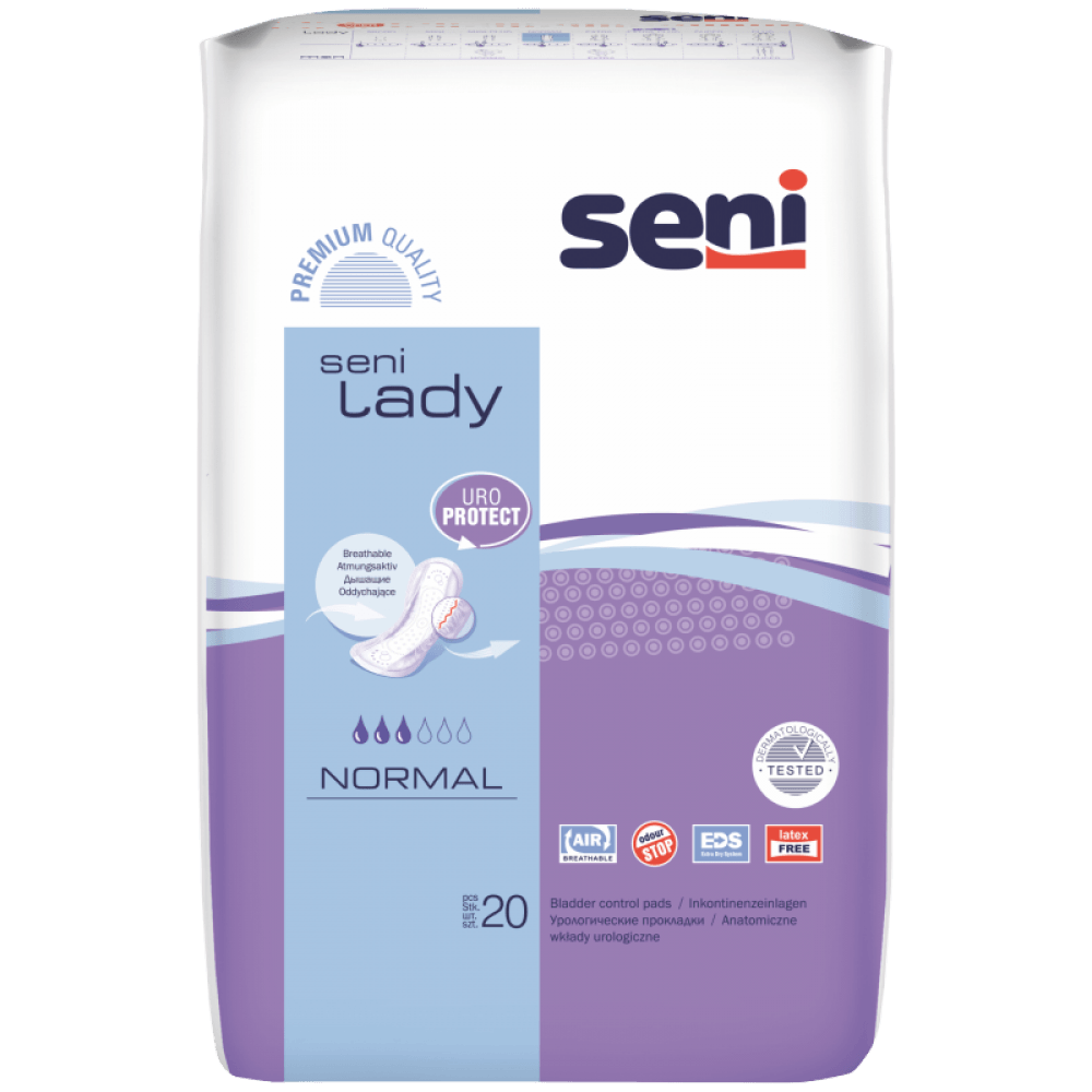 Seni Lady Normal respiráveis são uma solução perfeita para mulheres com incontinência urinária ligeira, garantindo: